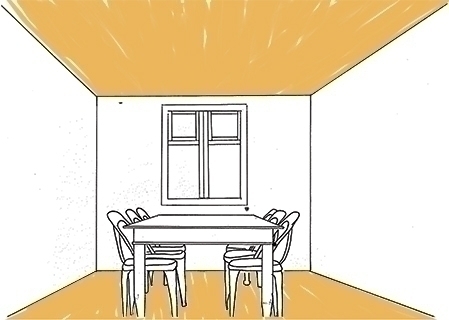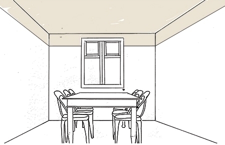 Heb je in plaats van een hoog plafond een laag plafond en wil je deze hoger laten lijken? Dat kan! Schilder tegenoverliggende muren in dezelfde kleur. Bij voorkeur in een donkerdere kleur dan het plafond en de vloer.
